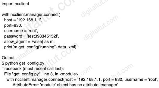 Importing a module (“ncclient” in this case) does not automatically import submodules/functions (“manager” in this case) so the above script causes error.