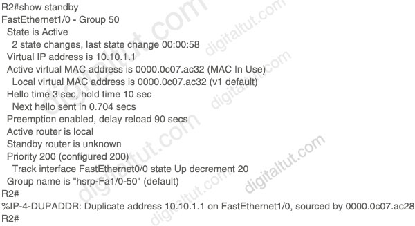 These messages specifically indicate that the router received a data packet that was sourced from the MAC addresses 0000.0c07.ac28, which is different from the MAC address of our HSRP group (0000.0c07.ac32). We also notice that 0000.0c07.ac28 is the virtual MAC address of another HSRP group (group 40 in particular; as 28 in hexadecimal equals to 40 in decimal).