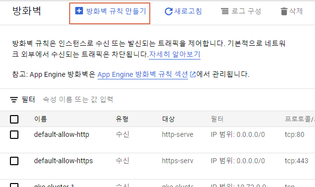 방화벽 설정을 해줍니다.