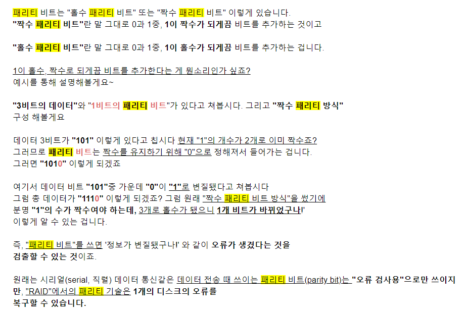 "기존의 데이터랑 똑같은지 확인하기 위해 추가하는(Parity) 비트(bit)"