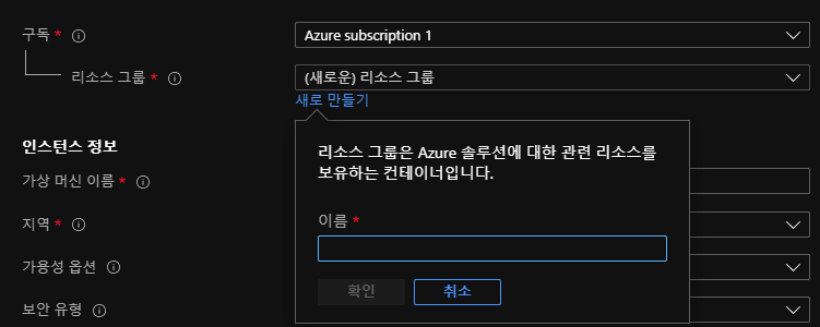 리소스 그룹 - 새로 만들기 클릭 (최초 1회)