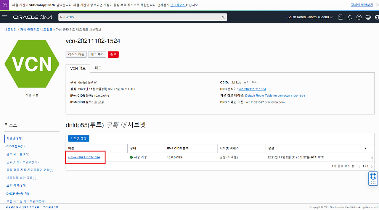| Oracle Cloud 가상 머신 생성 및 접속 (0) | 2021.11.02 |