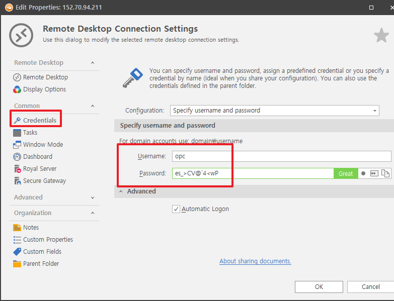접속 후 초기 비번 변경